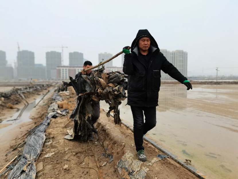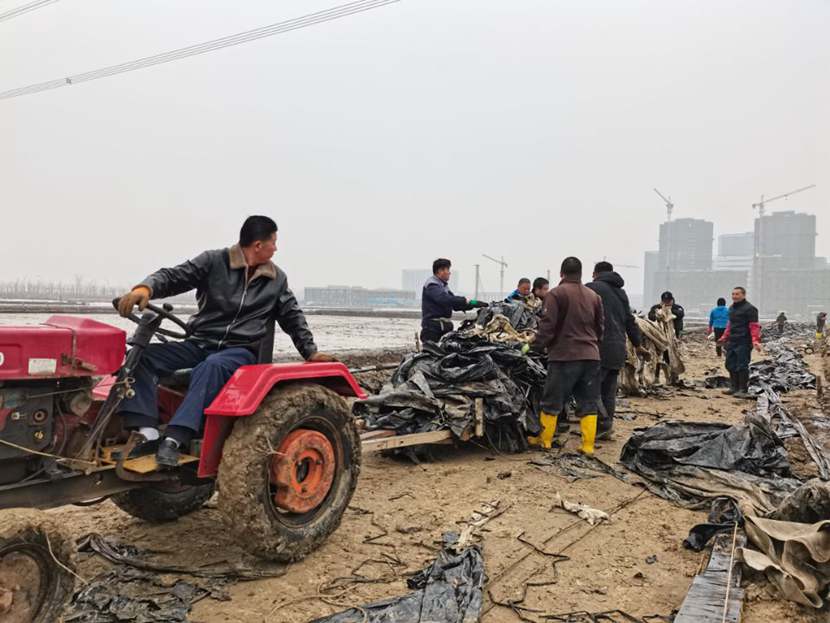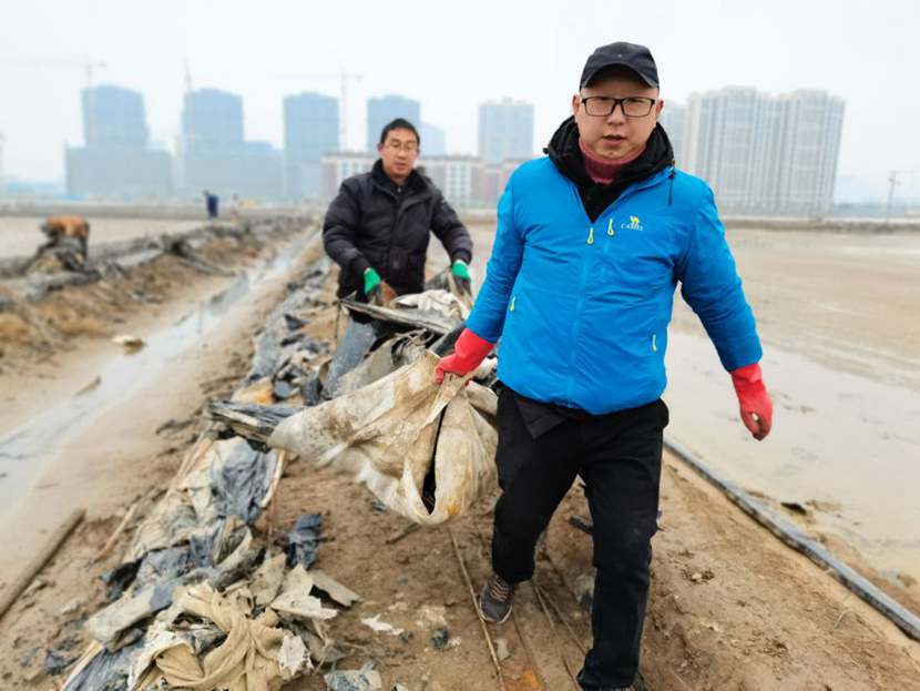 1月10日下午,第一批驰援队伍——翔立分公司党员突击队到达先锋班组,结合海州湾公司党员突击队共30余名队员,穿戴好工作服、水鞋,两人一组,三人一队,双肩挑,三人抬,紧张有序地清理生产现场拆除下来的废弃的塑布、钢丝等杂物。