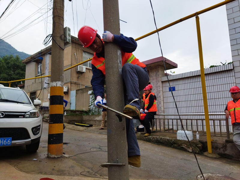 上午,翔立一班人参与了标准化住宅小区弱电井光缆分纤箱整治,从用户端子皮线光缆的打码贴标到小区光交箱托盘尾纤和分光器的整理摆放等都一一学习。下午,又跟随工作人员到了墟沟“城中村”西南山散户老城区进行了线缆整治现场学习,在这些非标准小区,大家还兴致勃勃的练习了脚扣登杆作业。