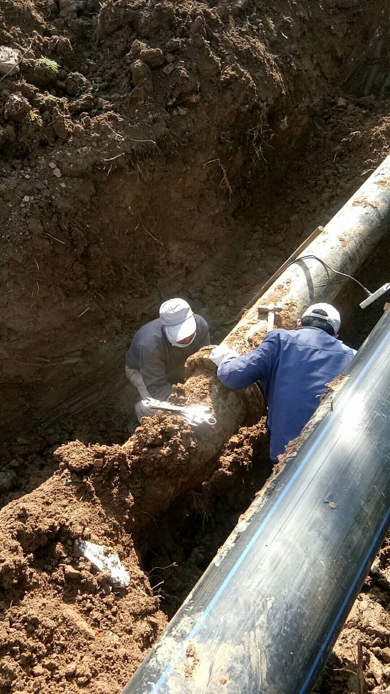 镜头四:新光路盐河边被开发区污水管道施工损坏的灌西钙液管道,抢修工作正在紧锣密鼓的进行中。争取早一天完成就能早一天开机打卤,将损失减少到最小。