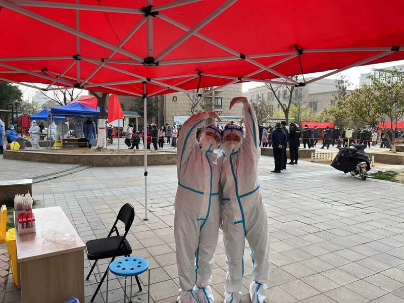 16:00,检测进入尾声,忙里偷闲和大家聊会天,身边的“大白”来自各行各业,疫情防控战打响,在这危难时刻,我们一同挺身而出,临危受命,“逆行”冲往防疫第一线。大家听从指挥、主动担当的具体行动,充分体现了年轻党员能打硬仗、敢打硬仗的优良品格!
