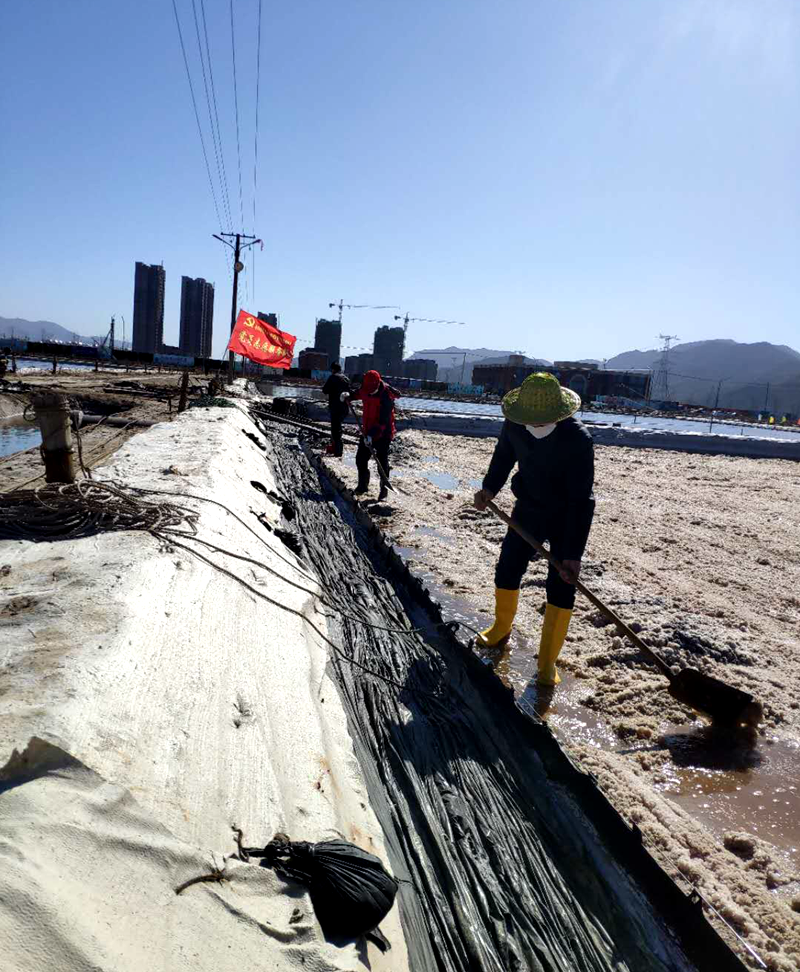 红色的党员志愿服务队旗在生产滩头迎风飘扬,大家挥舞着铁锨,协助工作人员推盐、清边,将似雪的白盐推送到传输管道,展现出不怕苦、不怕累、不怕脏的雷锋精神,充分发挥党员的先锋模范作用和众志成城团结协作精神,在为公司首季开门红贡献力量中不断凝聚起党组织合力。
