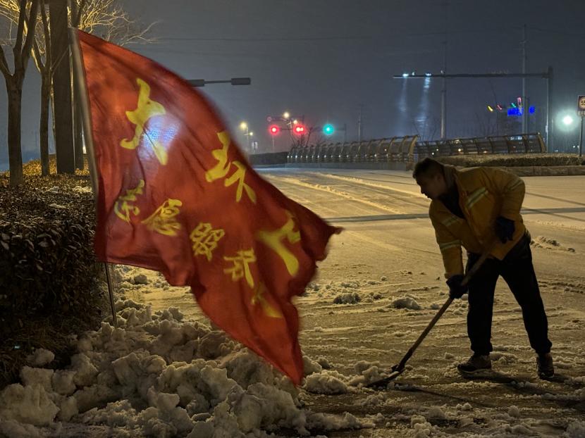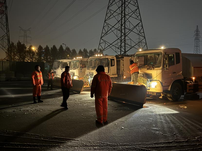 “摇人,快摇人”。环卫分公司迅速响应并于凌晨1点01分紧急启动扫雪除冰应急预案,全力以赴迎战风雪。
