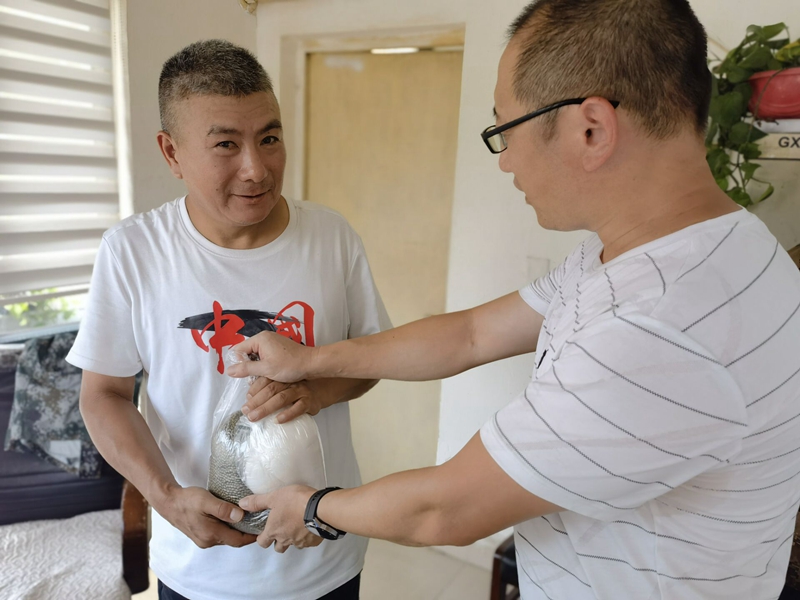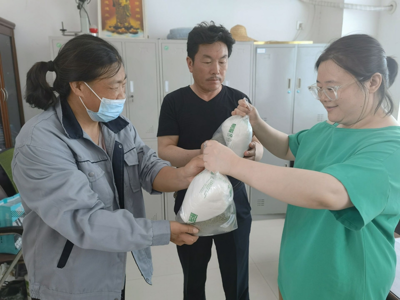 公司班子成员还自费为班组成员、保安、保洁发放绿豆、白糖等降暑物资。