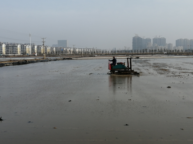 近日,大浦工区为了闹增产,想方设法增加产盐面积,将10块卤台600公亩改造为结晶池,针对卤台中的淤泥,采取和耙压实处理池板。