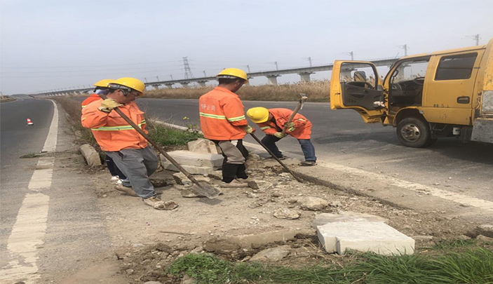 411日,市政分公司接到紧急任务,急需在周五前完成烧香河大桥至242路段约100米道口路缘石修复作业。