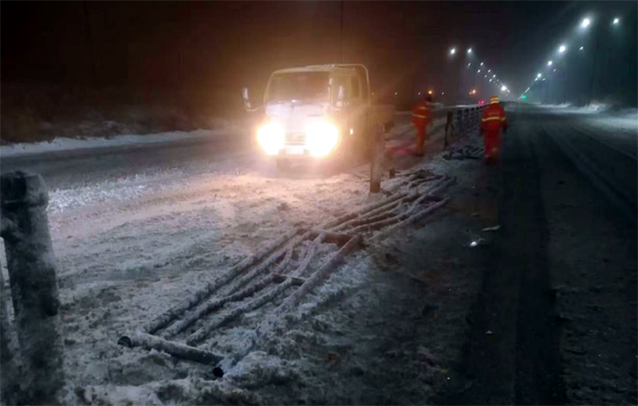 市政分公司根据公司安排,负责融雪剂装卸工作,从23日下午到4日上午,市政分公司累计装卸融雪剂已达150余吨。该分公司在做好保障融雪剂装卸作业的同时,抽调4名精兵强将,处理因大雪导致的道路交通事故应急处置4起,应急处理道路护栏11节,约38米,防止交通事故二次发生。在5日凌晨更是经理卢正杨带领10名党员先锋突击队,支援重点道路徐新路的融雪剂抛洒作业,仅靠双手挥着铁锨,通宵奋战,迎难而上,高质高效完成融雪剂抛洒作业路段。(李涛)
