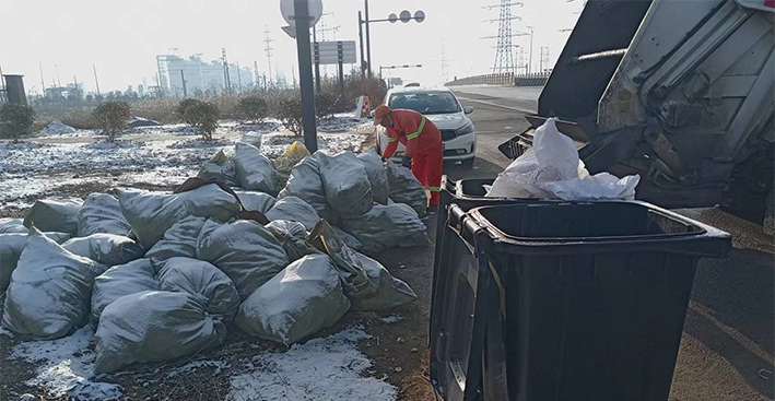 早上六点,在徐圩新区垃圾转运站,环卫分公司垃圾清运班组班长罗海军正在等着垃圾收运中转车的到来。他说:“知道昨晚下雪了,今天我们提前一小时就上岗了,以防因为道路湿滑影响收运效率。” 据统计,在持续低温时段,他们每天清运生活垃圾高达15吨,清理转运各类果皮箱垃圾达200余个及19家企业(单位)的垃圾桶,并同步负责装运由道路保洁工人捡拾定点摆放在路边的近500包袋装垃圾。(何春林)