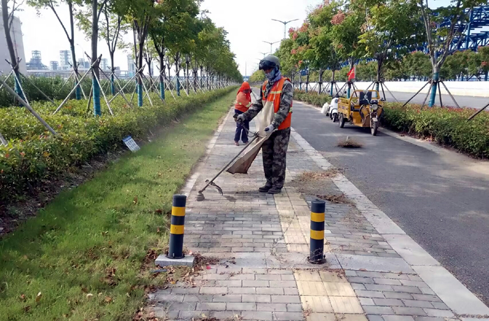 强整改重提升。针对保障要求,结合徐圩城建相关部门路线整改方案,保洁分公司自加压力,管理人员分片包干下沉道路一线,对接班9个班组长开展保障行动。海滨大道、园区、228班组,100余名保洁卫士拧成一股绳携手奋战。劳动现场,大家无惧秋阳高照,挥动手中铁铣,克服尘土飞扬,清理路边积土杂草100余处,清洗波形护栏200余米,徒手捡捡绿化带垃圾达300余袋,大保障活动各项工作推进,促进班组工作能力、和谐合作提升。