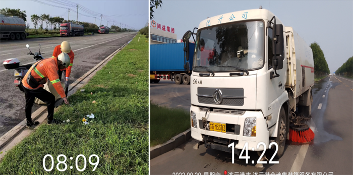 提升道路保洁率。出动高压冲洗车、清扫车、对园区主次街路开展洗扫除尘、清扫保洁作业,对重点路段祥和路、云港路实行“前高压、后洗扫”的联合编组作业模式,增加机械清洗频次,保证道路洁净度,进一步降低道路含尘量。充分发挥职业职能优势,实施“立体化、全覆盖”的保洁模式,通过人机结合清洗主道和辅道5万余米,为园区的靓丽再添新风景。