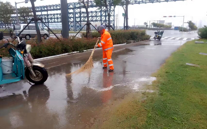 该分公司9个班组人员,在公司统一安排下,按时到达指定道路保洁路段。在班长的带领下,不停的排查清理路面各类垃圾,挥动手中大扫把,清理道路积水30多处,徒手清倒果皮箱200多个,20台大中型清扫车辆安全有序赶赴指定清扫路线,加满车厢用水,工作台班达40余个。现场工作中党员先锋示范引领一路彰显,人工清理路障石块20多块,清理上海路大风刮落梧桐落叶,树枝30多袋,工作时长达4个多时,风雨中爱岗敬业画面处处体现,有力保障雨中新城道路环境整洁靓丽。(杨波)