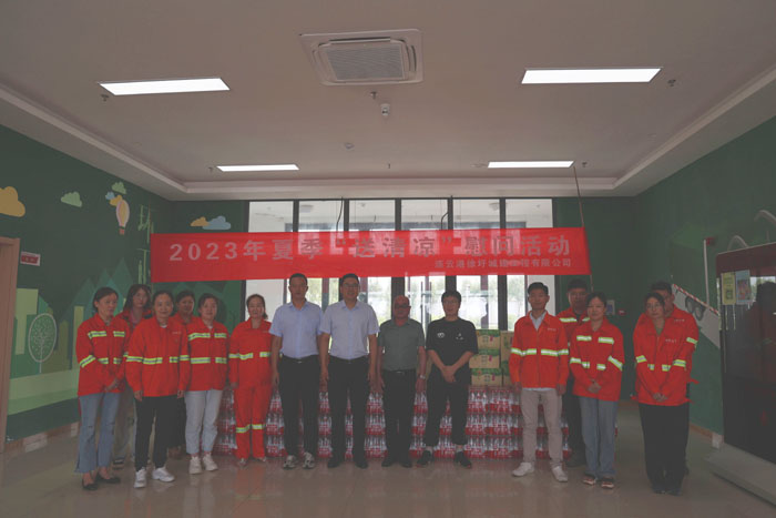 7月31日,方洋集团总裁助理、徐圩城建董事长刘明光,徐圩新区建设局徐冲,徐圩城建副总经理肖坚一行人踏着滚滚热浪来到徐圩新区环卫运营管理中心给悦升公司广大一线职工“送清凉”。