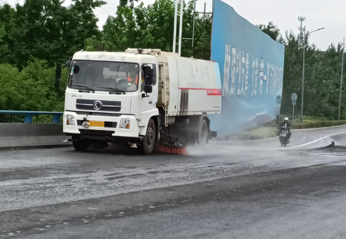 该公司针对桥面泄水孔、泄水管、排水道等地方安排专人检查,养护清理的垃圾及时处理到位,不得堆放在泄水孔周边。汛期视情况加大清理频次。桥下卫生死角杂物集中捡拾、打包、装袋 、回场。桥面护栏乱悬乱挂广告、标语彻底清除及时冲洗,恢复原貌、露出底色。桥梁伸缩缝采取人工与机械结合重点冲洗清扫,保障伸缩缝干净整洁。目前,所管辖区大小桥梁已经水洗清扫整治到位。有效降低桥面扬尘现象的发生,增强行车安全系数,全面提升园区道路环境质量。